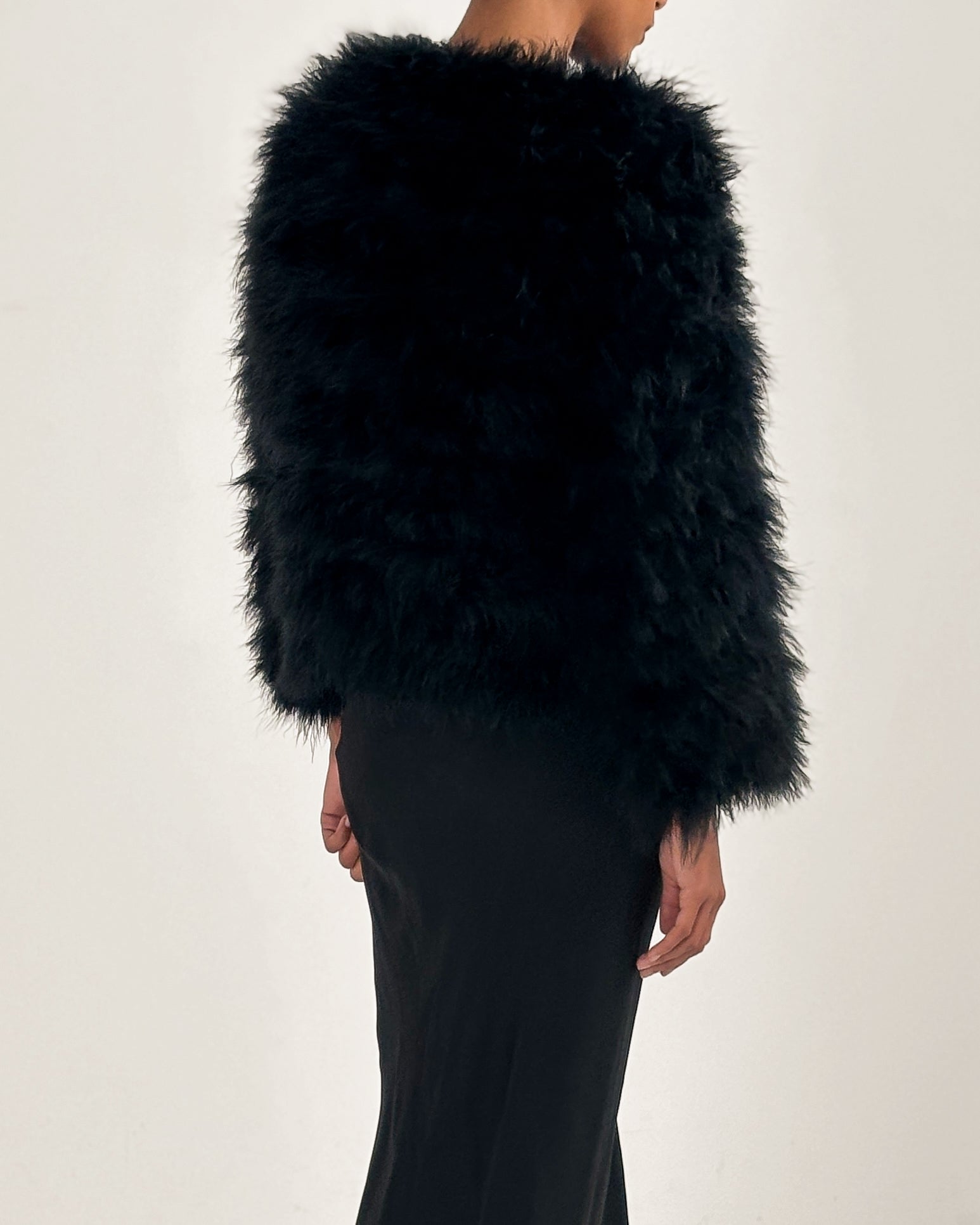 Lined fur jacket in black, worn on the Dolce & Gabbana Autumn/Winter 1999 runway.