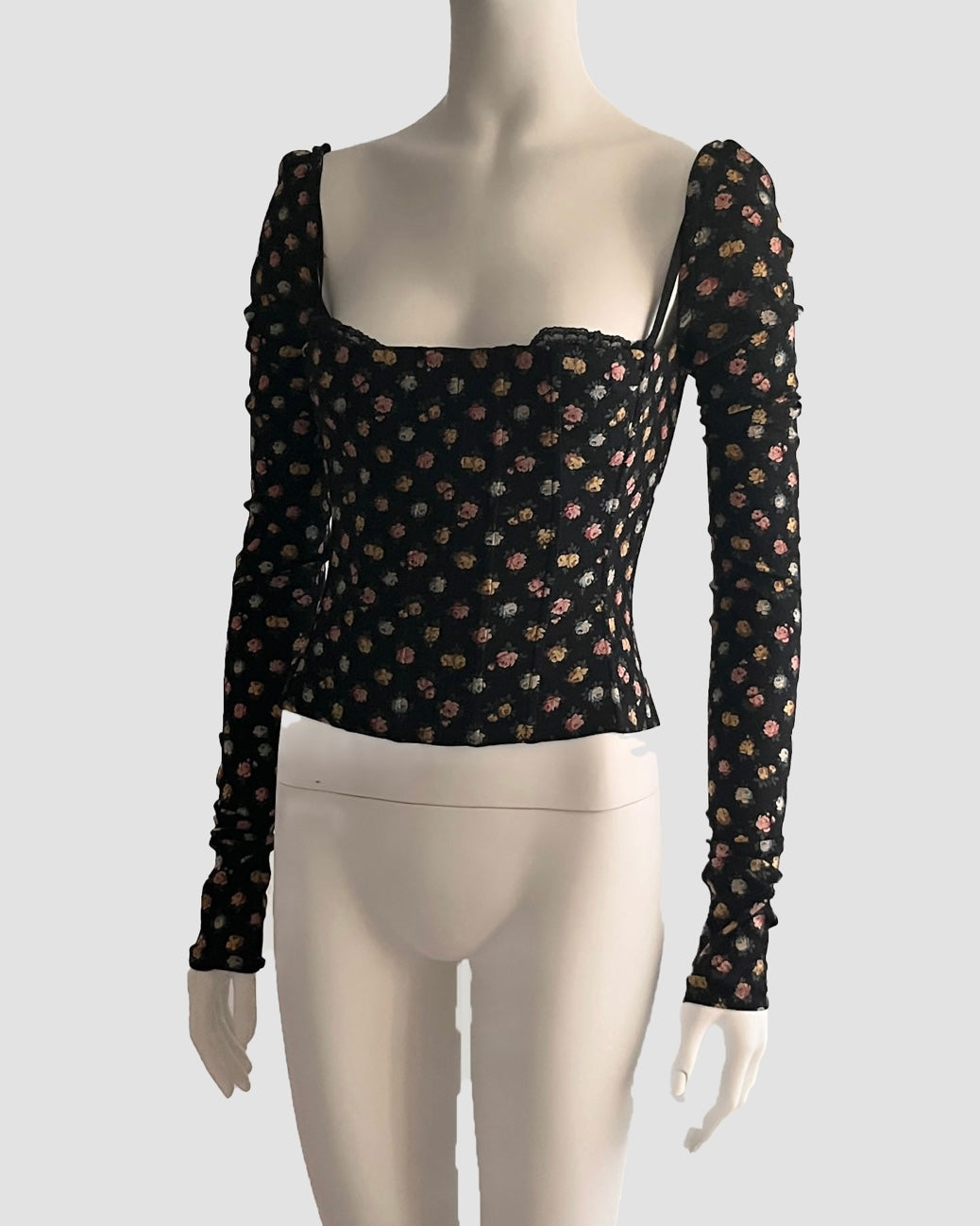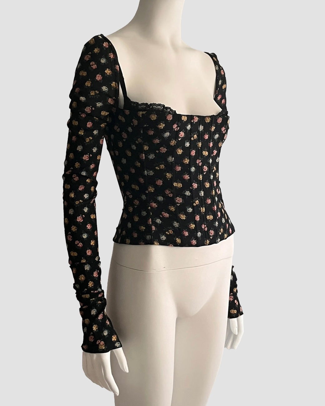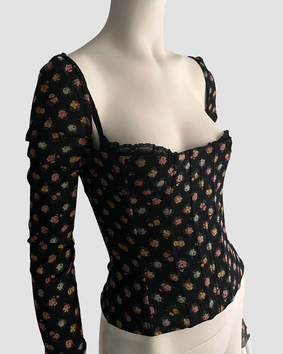 Boned corset top with in-built lace bra and floral detailing from Dolce & Gabbana Fall/Winter 2001 runway collection.
