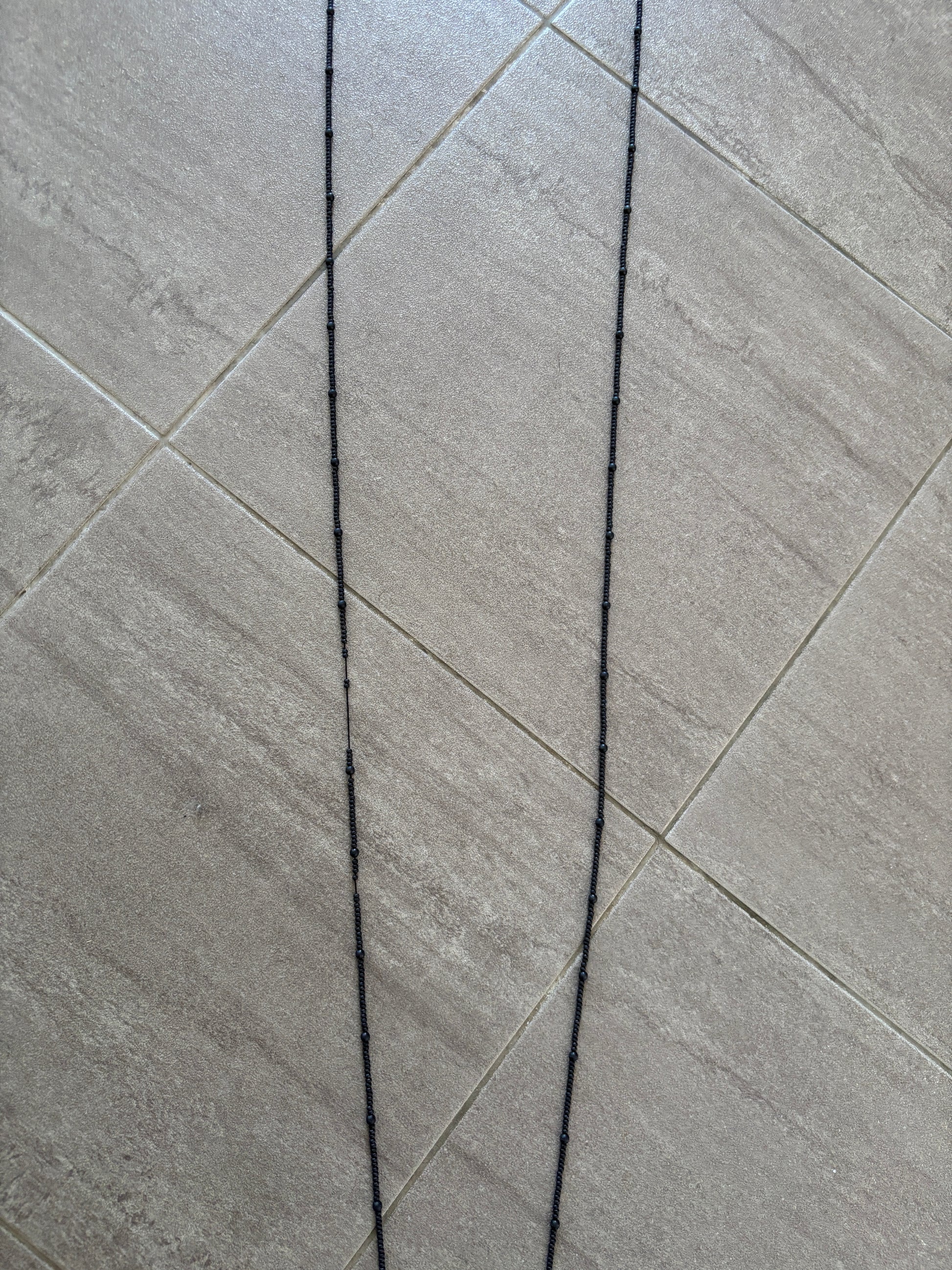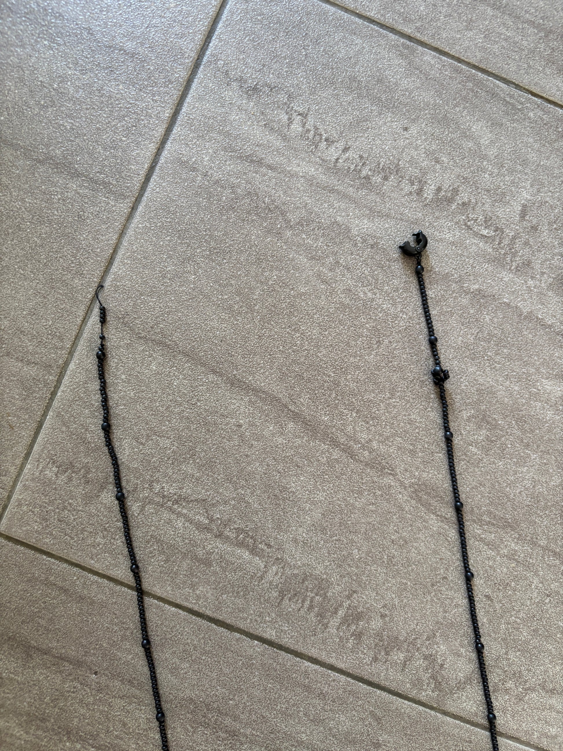 Good - missing beads on the right side about 4cm + at the end (see last pics) — unnoticeable when worn as it’s wrapped around the neck.