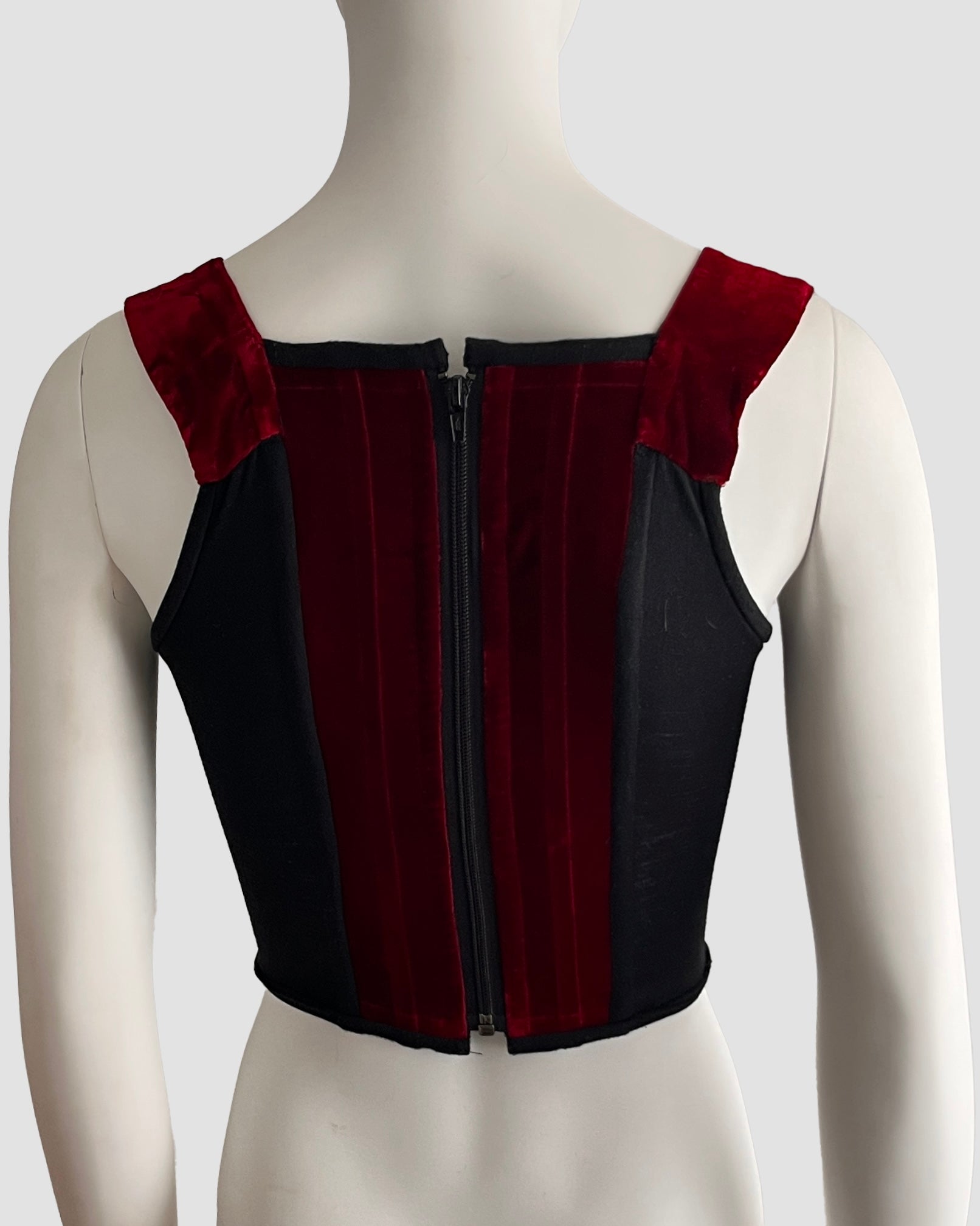 Red velvet boned corset from Vivienne Westwood Autumn/Winter 1987 'Harris Tweed' collection.